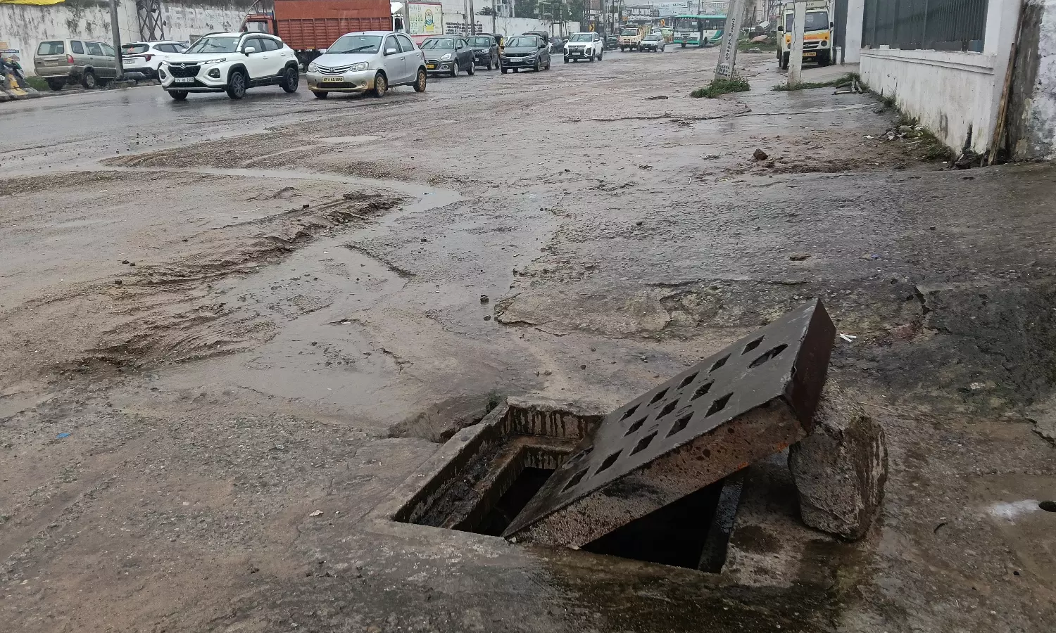 Hyderabad: Damaged and missing manhole covers across Hyderabad have turned into silent hazards. With the rains flooding streets, these open drains remain hidden under the logged water, becoming virtual death traps, particularly at night when visibility is poor.