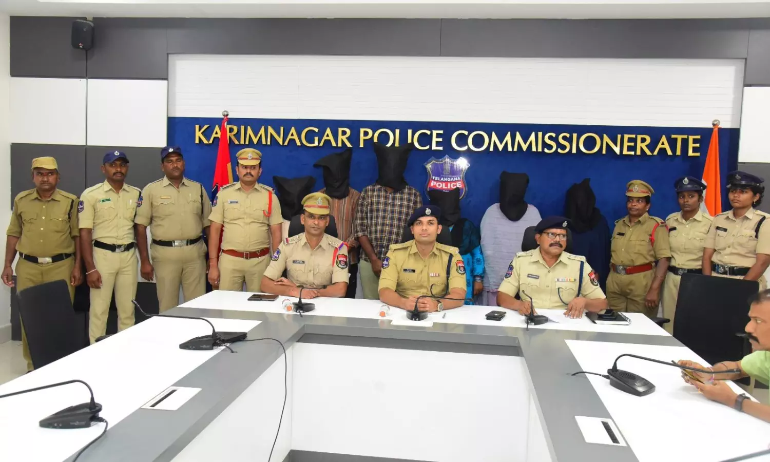 Addressing the media, Police Commissioner Gouse Alam said the six accused were identified as Kathi Mounika, 29 (the victim’s wife), A. Sreeja, 32, P. Shiva Krishna, 27, D. Ajay, 28, N. Sandhya alias Radha, 39, and Nalla Devadas, 49, all residents of Saptagiri Colony, Karimnagar. The deceased was identified as Kathi Suresh, 36.