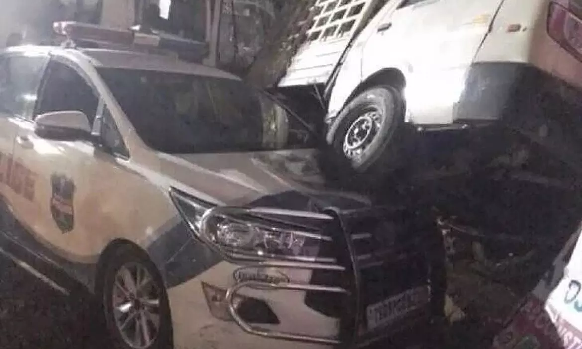 V. Gnaneshwar, SI Chikkadpally police station and the investigation officer (IO) told Deccan Chronicle that the truck was at a high speed when it rammed into two trolleys and hit a police vehicle parked on the roadside.