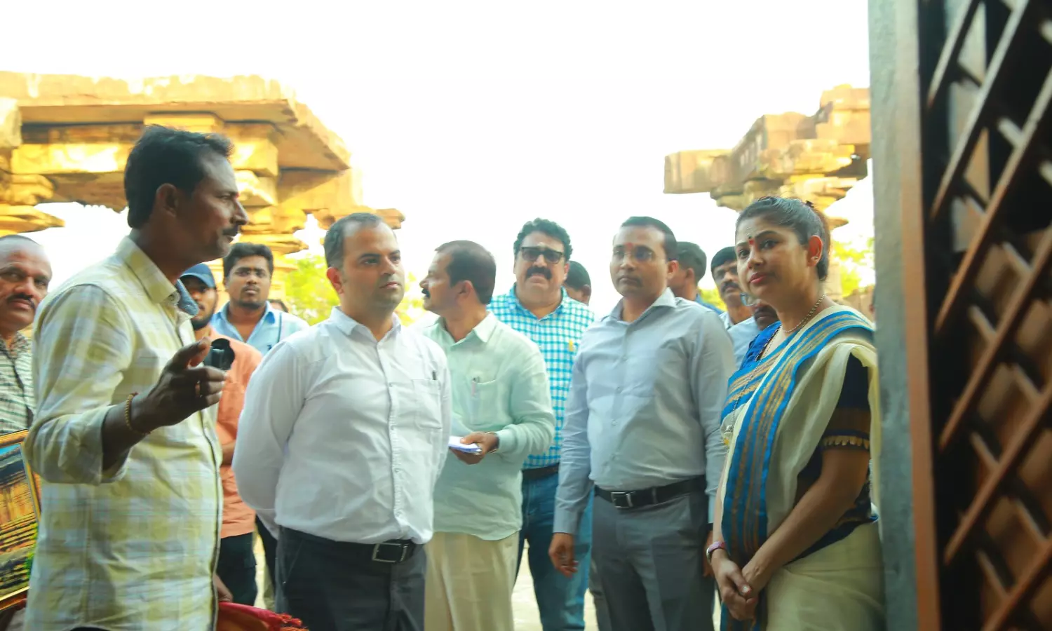 Accompanied by district collector Rahul Sharma, director of heritage Lakshmi, deputy director Ramulu Naik, and assistant director Mallu Naik, Sabharwal inspected the Kotagullu temple in Ghanapuram, Jayashankar Bhupalpally district, on Monday. During the inspection, they gathered information about the temple’s significance and related land details.