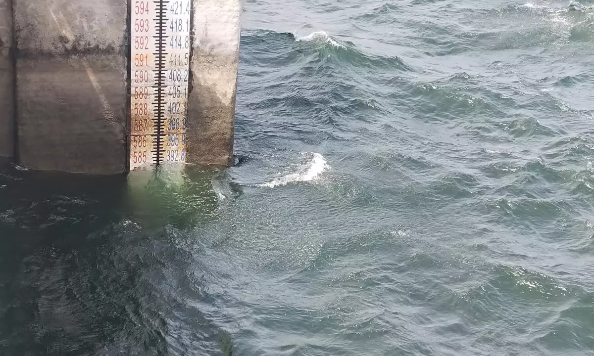 As of 3 pm on Monday, the water level in the reservoir stood at 584.40 feet, just six feet below the Full Tank Level (FTL) of 590 feet. The current water storage is 295.7 TMC ft, against the full reservoir capacity of 312 TMC ft. About 2,684 cusecs of water are being released through the right canal, 4,746 cusecs through the left canal, and 1,800 cusecs through the AMRP canal. The realised inflow into the project is recorded at 1,47,195 cusecs, while the total outflow stands at 38,762 cusecs.