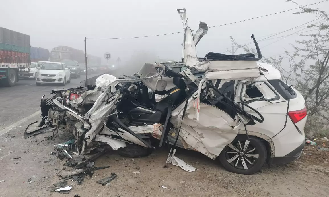 The accident occurred when a car travelling from Hyderabad to Vijayawada collided with a stationary lorry parked beside the highway.