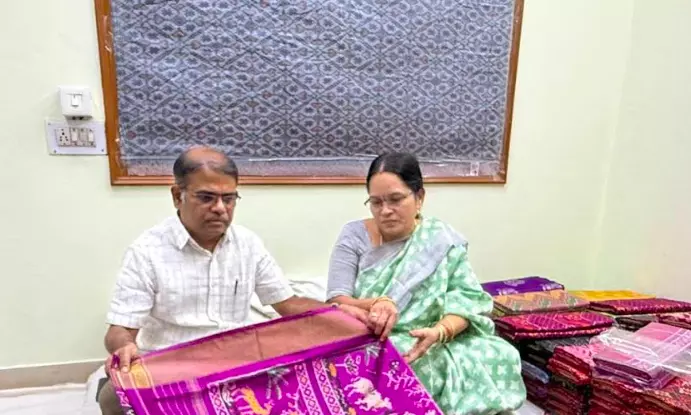 Hyderabad:Pavan Guda, a generational weaver of double Ikkat silk saris using natural dyes and Narmada and Gajam Narendra, known for their marketing skills, will be presented National Handloom Awards by President Droupadi Murmu on August 7, National Handloom Day, in Delhi.
