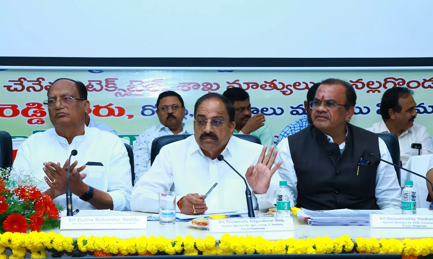 Nalgonda: Agriculture minister Tummala Nageswara Rao directed officials from various departments to coordinate efforts to prevent drinking water shortages, crop drying, and power disruptions during summer. Chairing a review meeting on Saturday at the Nalgonda collectorate, alongside Legislative Council Chairman Gutha Sukender Reddy and roads and buildings minister Komatireddy Venkat Reddy, he instructed officials from Nalgonda, Suryapet and Bhongir districts to stay vigilant.