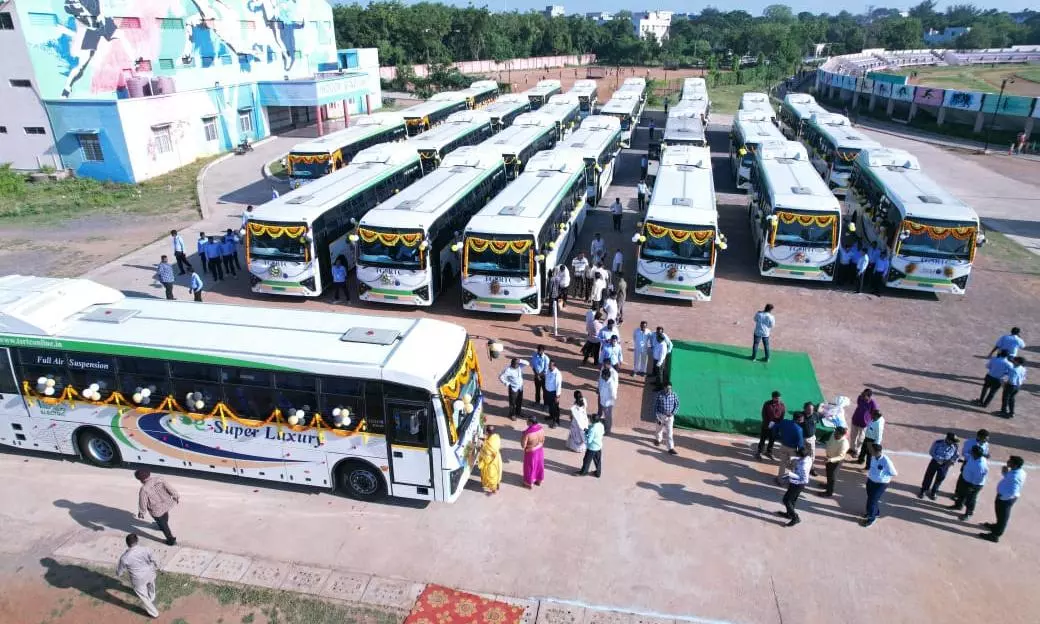 He launched 33 electric super luxury buses at Ambedkar Stadium in Karimangar on Sunday. The minister said that they would try to release all pending allowances to the RTC employees before Dasara.
