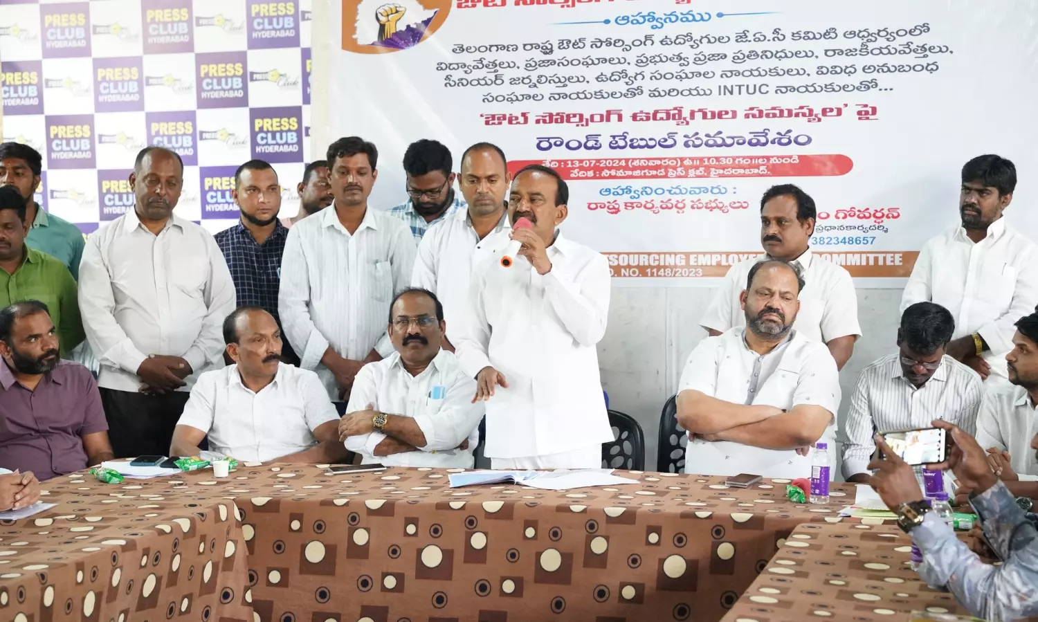 Taking part in a round table meeting arranged at the Press Club in Somajiguda, Rajender said he solved the problems of contract employees when he was finance minister in the BRS government. The salaries of contract employees were hiked, but the government failed to look into the demands of outsourcing employees.
