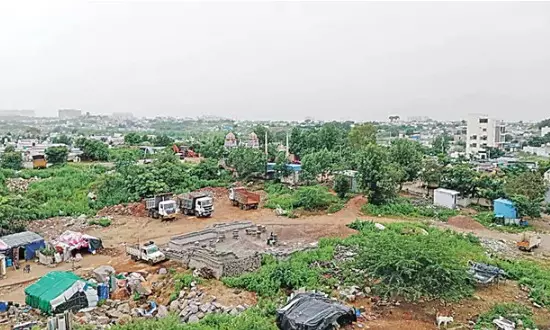Officials said houses measuring 60 to 70 square yards, each sold for about ₹10 lakh, were being built on the encroached land. Acting on complaints, HYDRAA identified that nearly 100 acres out of 300 acres in survey number 397 had been encroached.