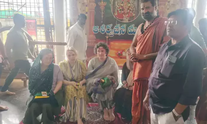 Warangal: Anna Lezhneva, wife of Andhra Pradesh Deputy Chief Minister Pawan Kalyan, visited the historic Bhadrakali Temple in Warangal on Tuesday. She was accorded a warm and traditional welcome by the temple priests on her arrival.