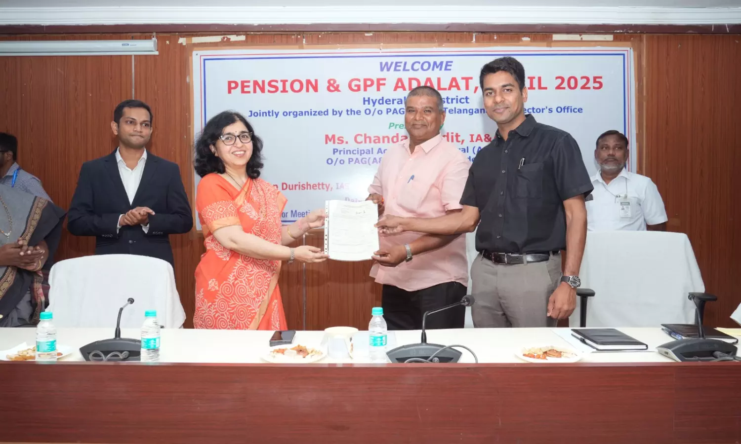 Hyderabad: Twenty pension payment orders and 15 General Provident Fund (GPF) authorizations were distributed by Hyderabad Collector Anudeep Durishetty and Principal Accountant General Chanda Pandit to pensioners and GPF subscribers during an adalat conducted at the Collectorate office here on Friday.