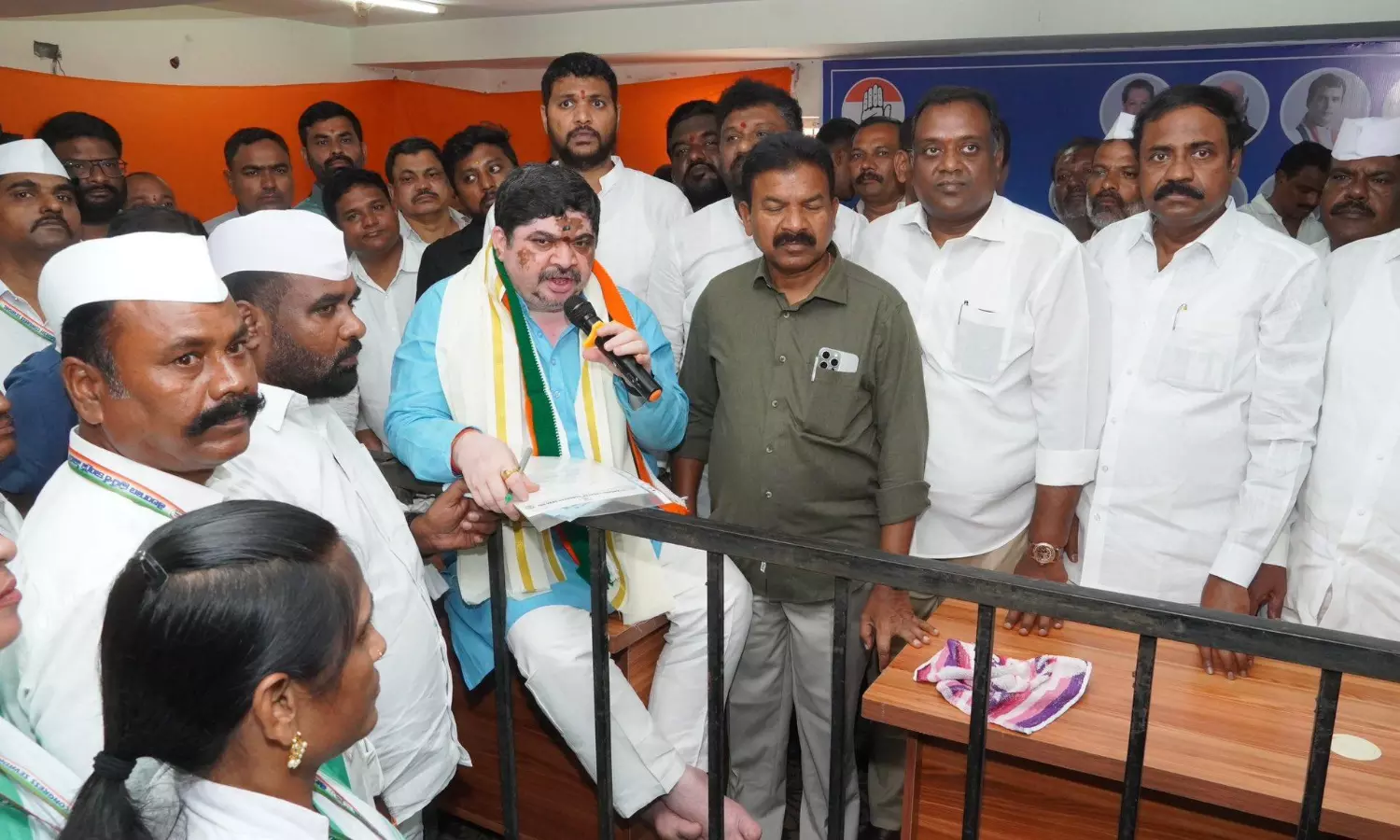 Hyderabad: People from districts thronged Congress headquarters Gandhi Bhavan on Wednesday to meet BC welfare minister Ponnam Prabhakar and submit petitions on their grievances. The minister received a total of 179 petitions in three hours, promising to take appropriate action on their issues. The Congress is organising the ‘Meet the Minister’ programme twice a week at Gandhi Bhavan to address public grievances and the concerns of the party workers.