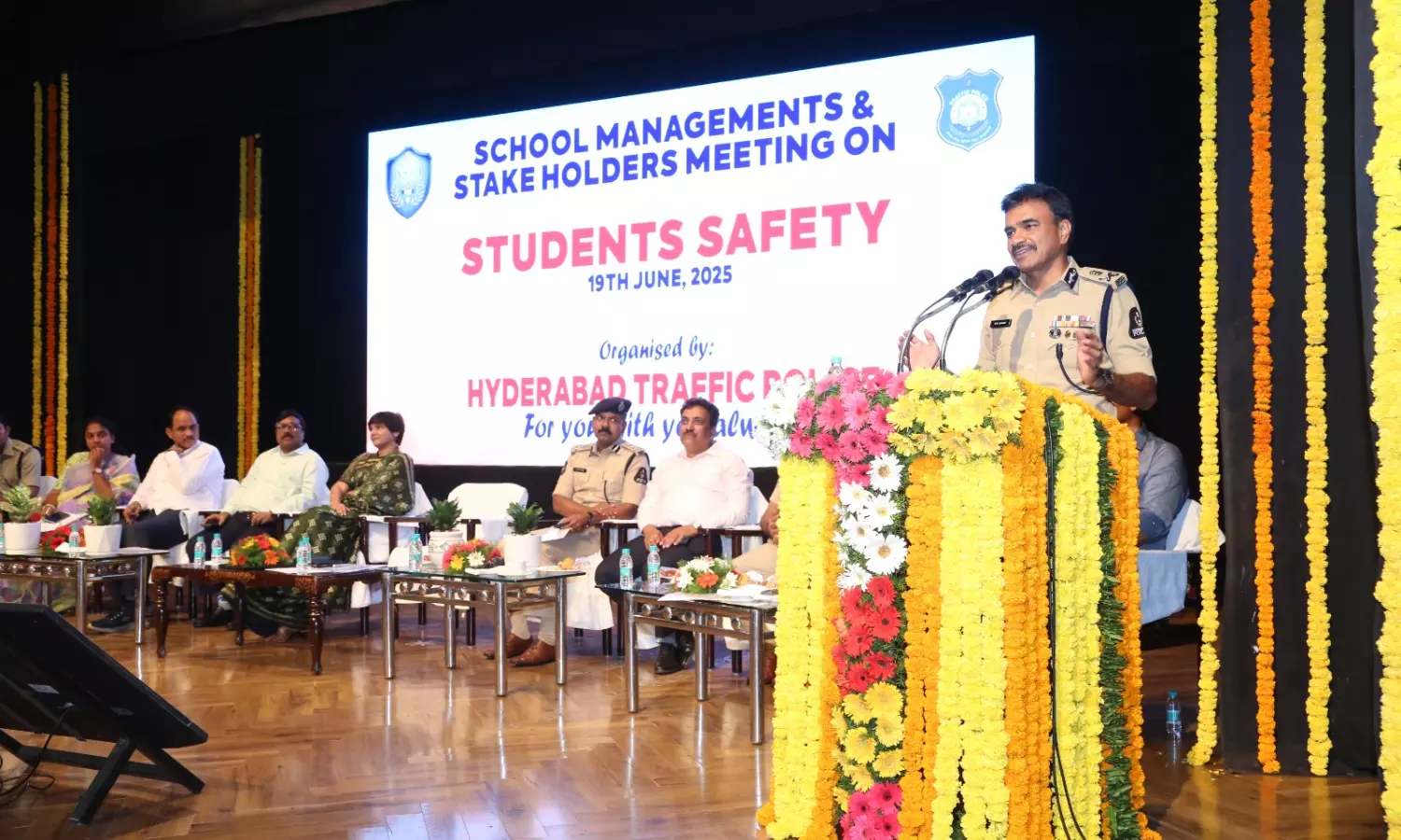 He was speaking at a meeting organized by Hyderabad traffic police with school managements and officials from various departments. The meeting was organized with an aim to ensure collective efforts among school authorities, parent committees, auto unions, and transport operators for the academic year 2025–2026.