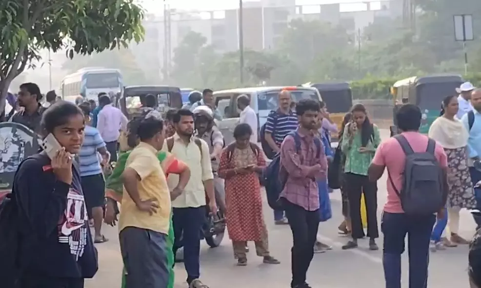 Passengers were left stranded at bus stops since early morning, while private cabs allegedly charged double fares. Reports also emerged of vandalism and forced shutdowns in several parts of Hyderabad.