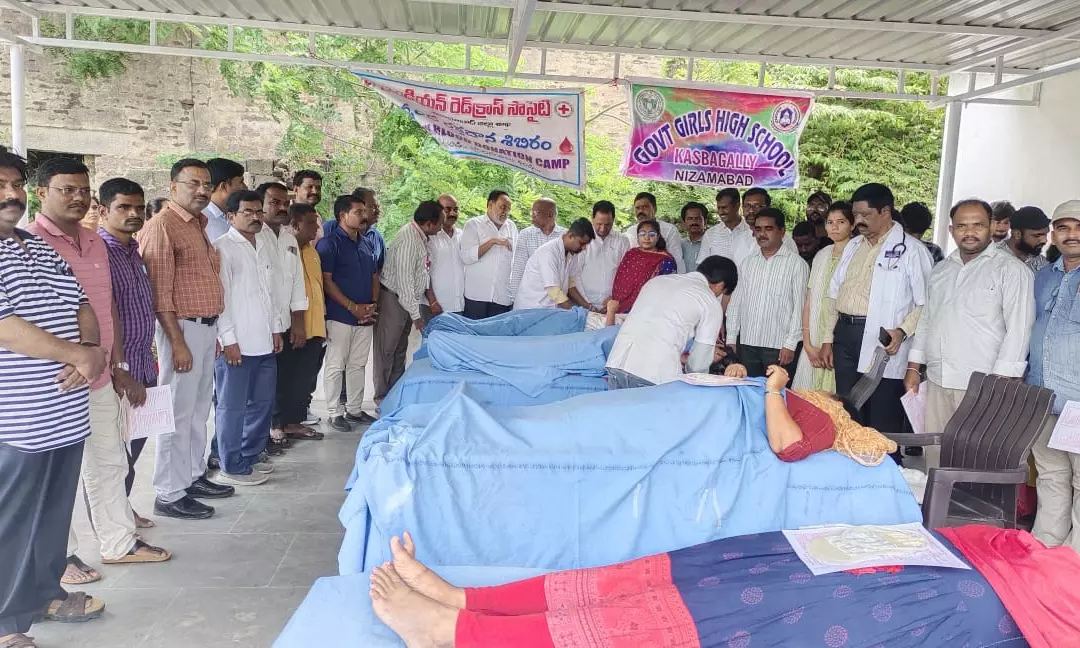 In the backdrop of blood shortage in the district, the blood donation camp got a good response. Red Cross Nizamabad unit president Busa Anjaneyulu, secretary Thota Rajasekhar, finance secretary Ravinder, Red Cross youth wing president Abbapur Ravi were present. Around 30 government teachers also donated blood on the occasion.