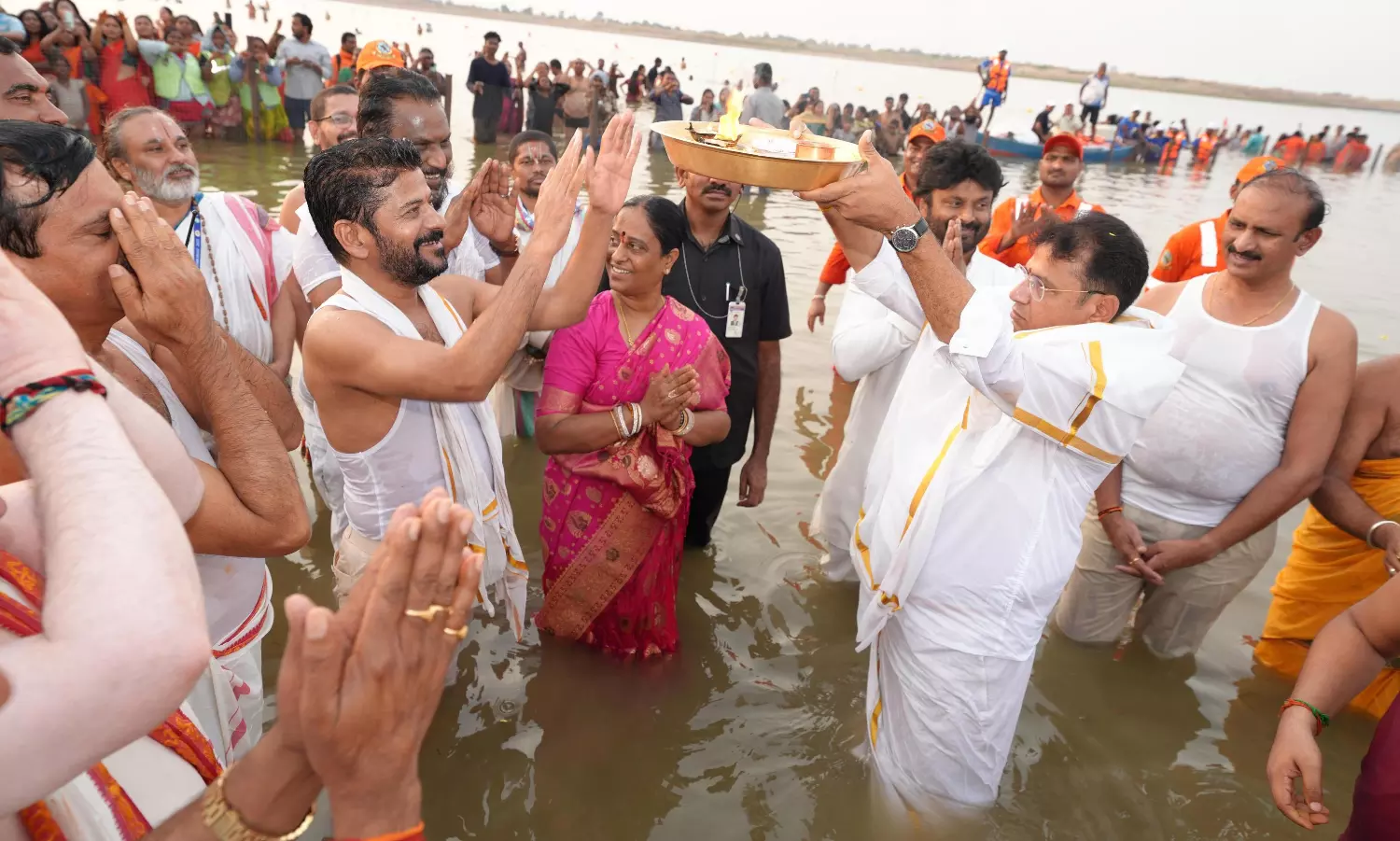 Addressing the devotees, Revanth Reddy stressed the importance of preserving Telangana’s spiritual legacy. “This is the first Saraswati Pushkaralu being held after the formation of Telangana state in 2014. Rivers are not just water bodies, they symbolise our culture and are revered as deities,” he said.