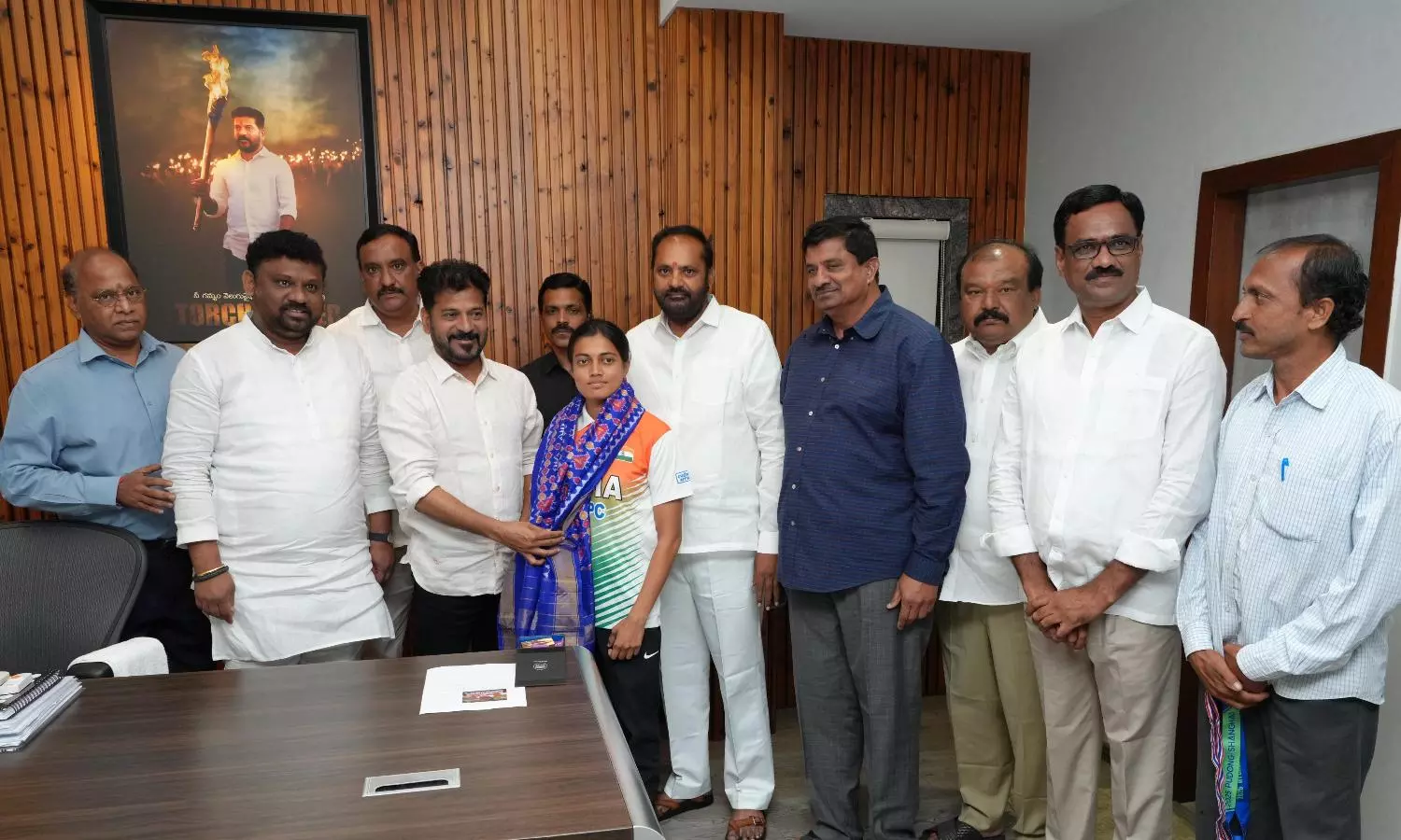Revanth Reddy congratulated Chikitha for winning the silver medal in the senior world cup team event held in Shanghai, China. Speaking after felicitating her, the Chief Minister said that the State government would provide all possible support and cooperation to provide complete training to her to win a medal in the Olympics.