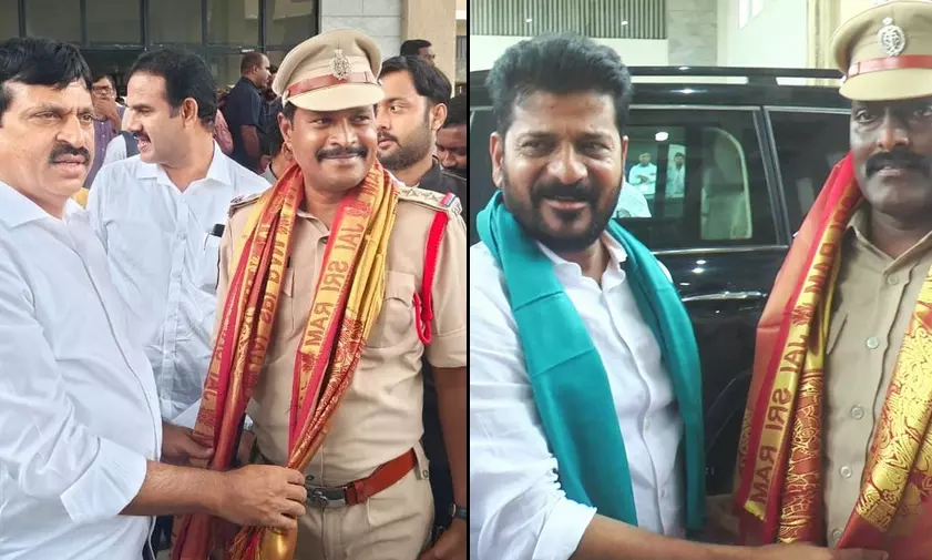 Revanth Reddy felicitates two CIs for providing timely help to railway passengers in Mahabubabad