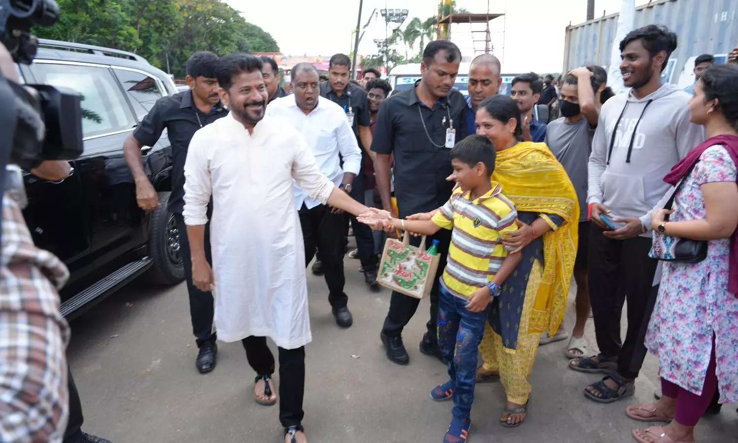 On stepping out of his vehicle at Tank Bund, he mingled with people, shook hands with children, and posed for selfies with devotees, drawing appreciation for his accessibility. Parents encouraged their young children to greet the Chief Minister, who patiently obliged them.