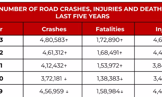 Hyderabad’s risk factors closely align with national trends. Speeding remained the leading cause of road crash deaths, responsible for 68.1 per cent of fatalities nationwide. Two‑wheeler users were the most affected group, accounting for 44.8 per cent of all deaths, followed by pedestrians at 20.4 per cent. These figures are particularly relevant for urban centres like Hyderabad, where mixed traffic and high two‑wheeler usage dominate daily travel.
