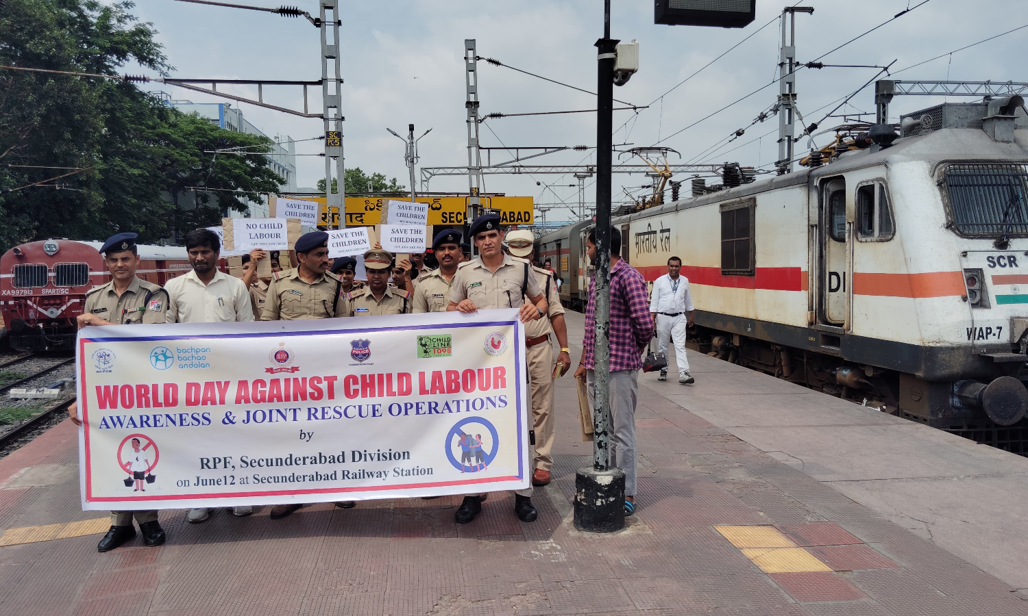 Hyderabad: In observance of World Day Against Child Labour on June 12, Railway Protection Force (RPF) of Secunderabad Division, in coordination with Bachpan Bachao Andolan (BBA), Child Help Line, and Government Railway Police (GRP), conducted awareness drives and campaigns across railway stations.
