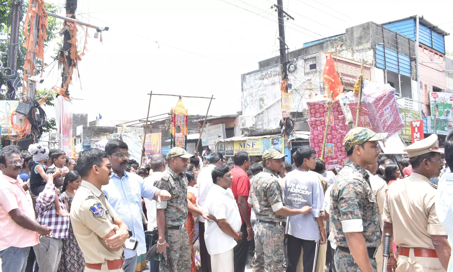 Devotees offered sheep, goats and chickens at various stops, and the main thoroughfares bore witness to these ritual offerings. The police deployed elaborate security arrangements, and commissioner P. Sai Chaitanya personally inspected the procession routes to ensure public safety.