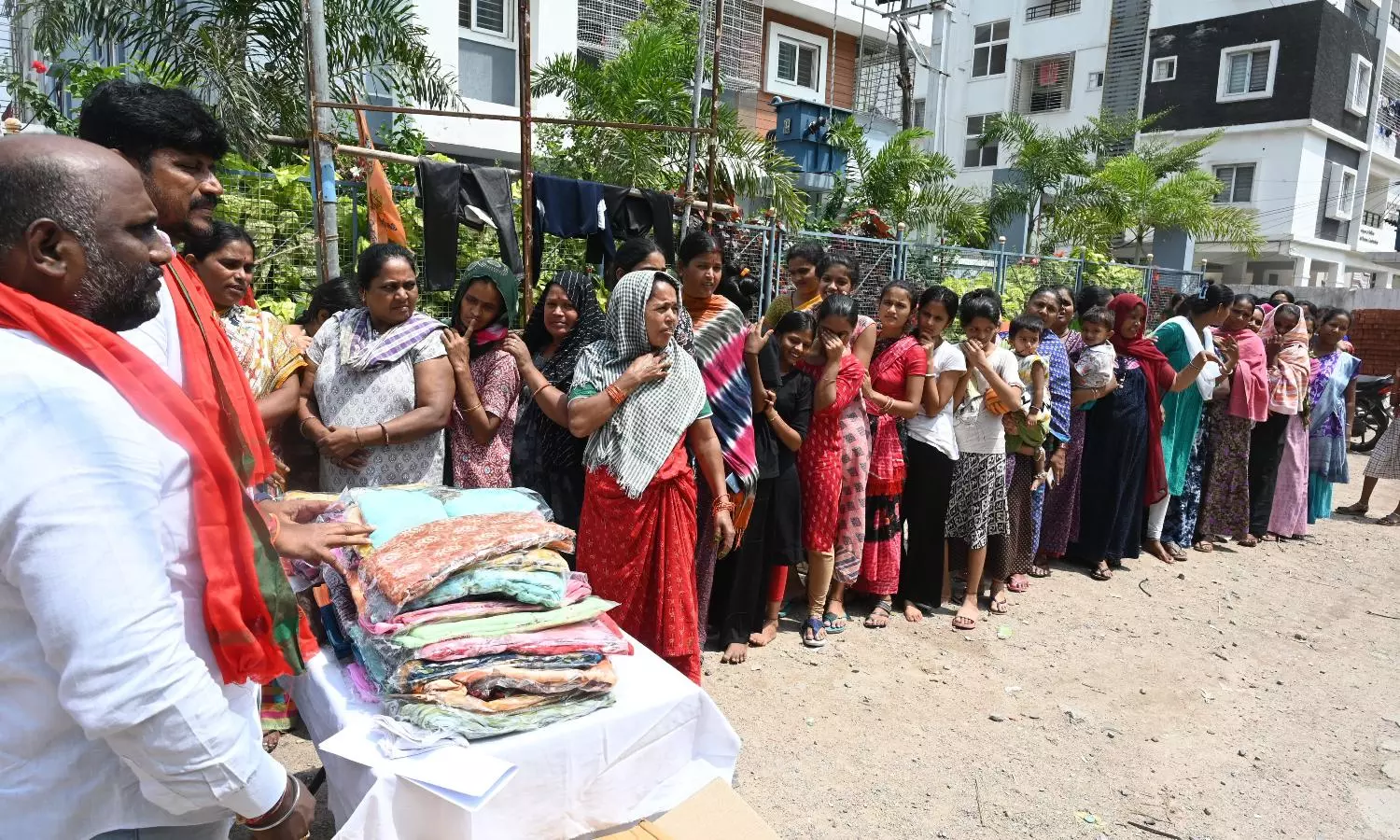 Hyderabad: Party leaders celebrated Samajwadi party foundation day in Jubilee Hills here on Friday. They distributed sarees to the women in Durgabhavani Nagar of Khairatabad constituency.