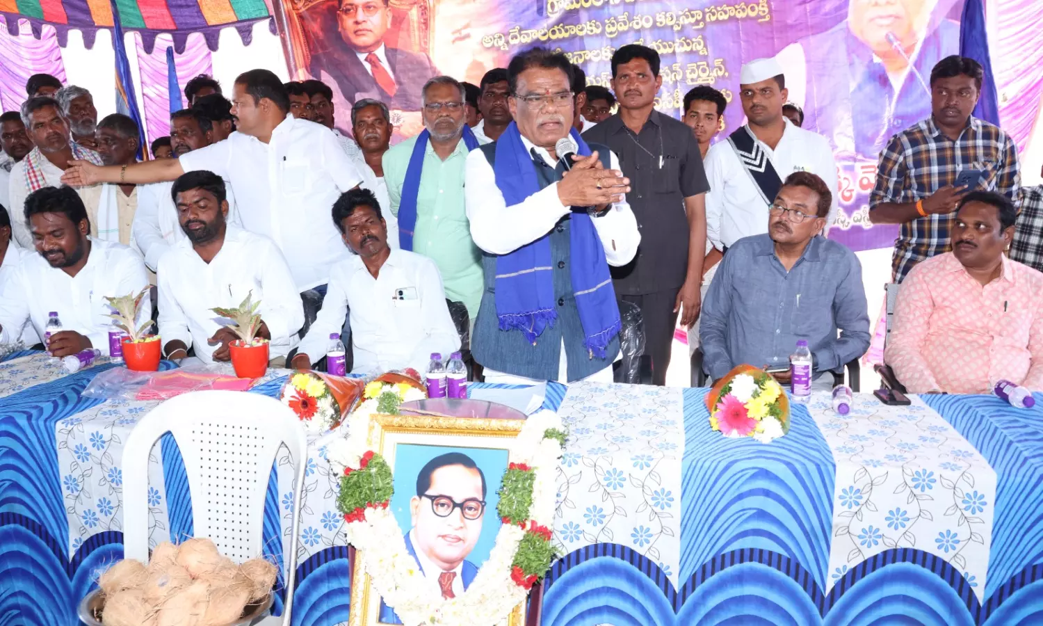 At the start of the programme, Venkataiah paid tributes to B.R. Ambedkar by garlanding his portrait. Community meals were later organised, with participation from villagers across sections.