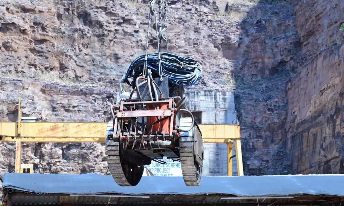 The machine from Anvi Robotics, was taken inside the tunnel on Wednesday. Equipped with various sensors and cameras, the robot, which can also dig, is expected to reduce the need to have people working in the potentially dangerous section of the tunnel.