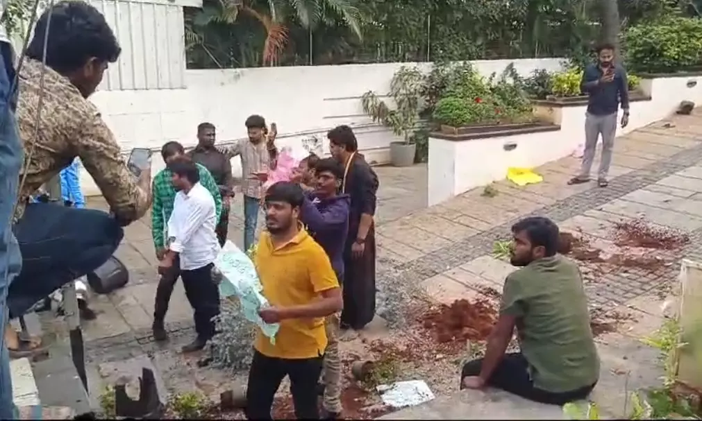 Hyderabad: Jubilee Hills witnessed a tense situation on Sunday as members of student unions staged a protest outside Allu Arjun's residence. The protesters, claiming to be students, held Allu Arjun responsible for the death of Revathi and demanded an ex gratia payment of Rs 1 crore for her family.