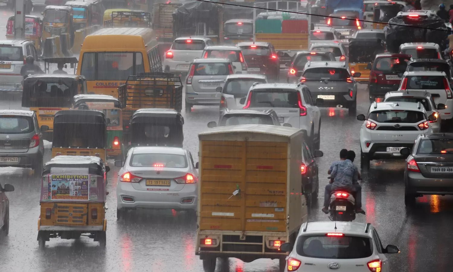 Sudden Downpour Leaves Roads Jammed in Hyderabad