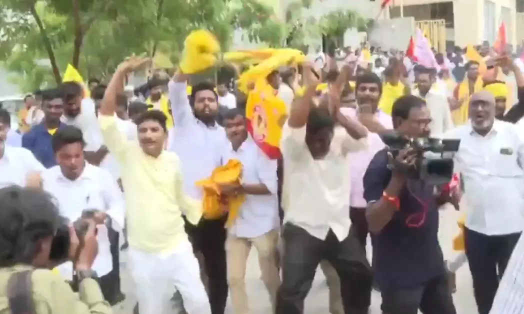 Hyderabad: The Telugu Desam Party (TDP) cadres on Tuesday started celebrating at NTR Trust Bhavan here as the party is leading towards the majority in the counting of Andhra Pradesh assembly polls.