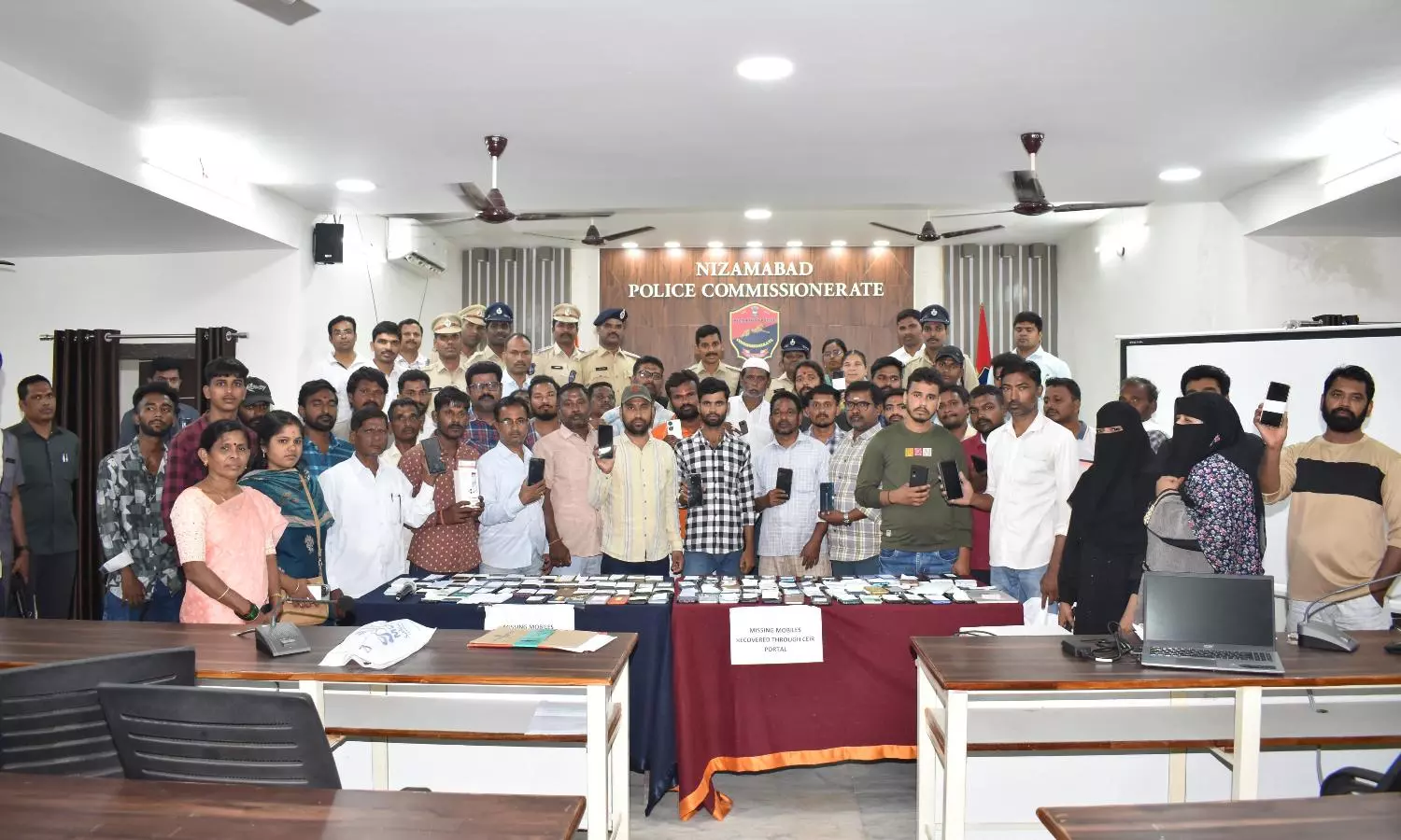 Nizamabad: Nearly 125 stolen cellphones were recovered and returned to their owners in Nizamabad on Friday. Police Commissioner P. Sai Chaitanya handed over the devices to petitioners who had lodged complaints after losing mobiles in Nizamabad, Armoor, and Bodhan police divisions.
