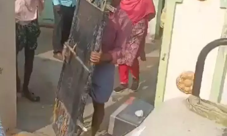 Frustrated by the lack of response, bank officials arrived on Wednesday with a tractor. Although some funds were eventually paid and time requested by Prema Latha, the officials forcibly removed the gate of Kalamma’s house with the help of the tractor.