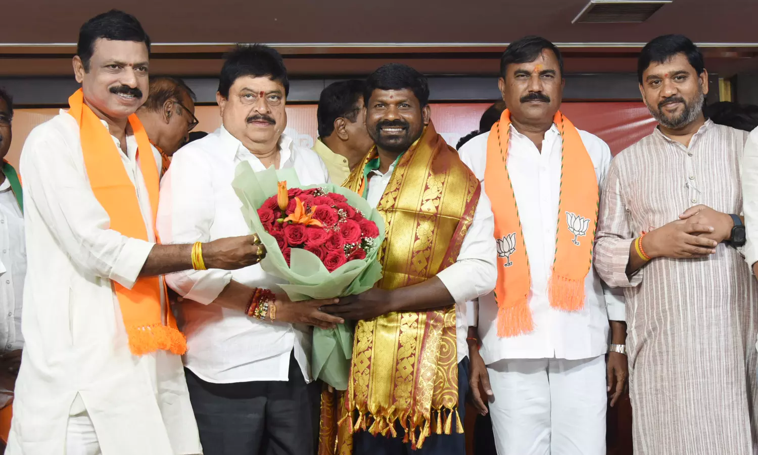 The event marked the entry of Guvvala Balraju, a two-time MLA from Achampet in Nagarkurnool district, who left the BRS to join the BJP.