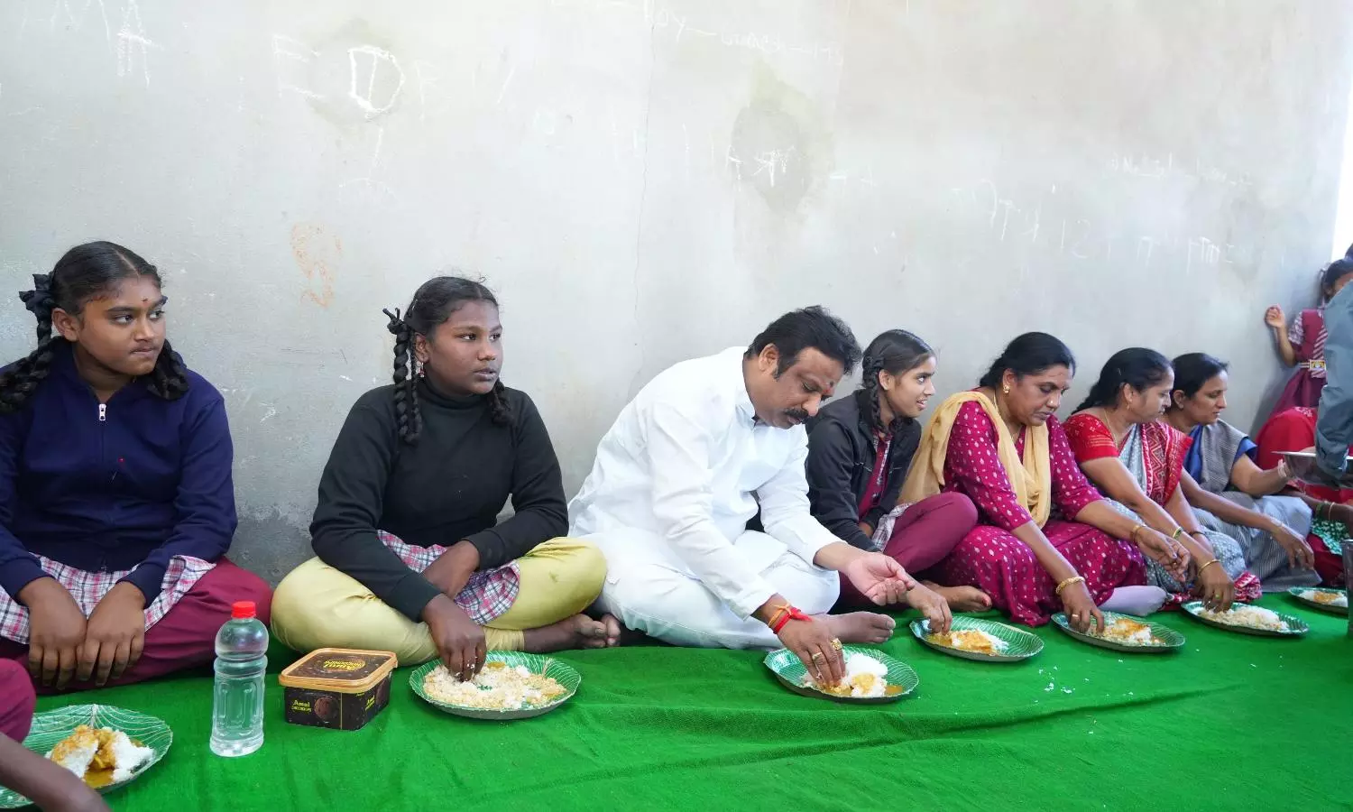 Hyderabad: Cantonment MLA Sriganesh Narayanan made a surprise inspection at the government school in Sikh Village, Mudfort, to review the punctuality of teaching staff and the school’s overall functioning, on Thursday. To evaluate the quality of the midday meal served to students, Ganesh dined alongside them.