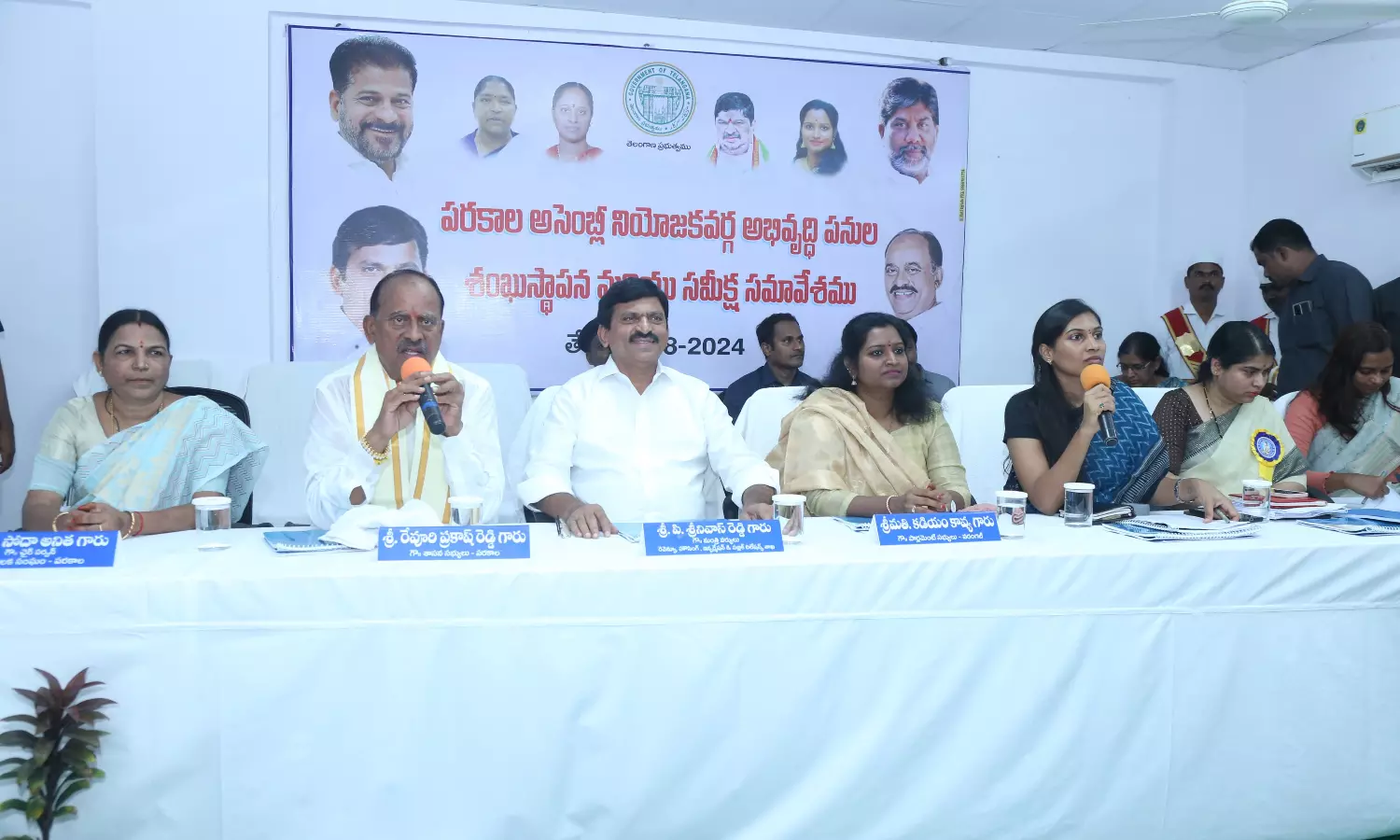 The in-charge minister accompanied by MP Kadiam Kavya, MLC Basawaraju Saraiah, MLA Revuri Prakash Reddy, KUDA chairman E. Venkatram Reddy, district collector Praveenya laid foundation stones for the construction of a government degree college building at a cost of Rs 5 crore and developmental works under AMRUT 2.0 scheme at a cost of Rs 11.74 crore in Parkala constituency of Hanamkonda district on Sunday.
