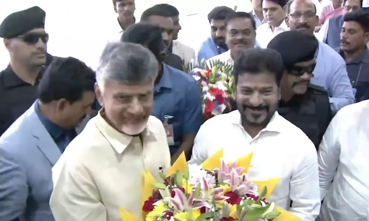 Revanth Reddy first arrived at the Praja Bhavan and a few minutes later Naidu came to take part in the meeting. Revanth Reddy came out to the portico of the Praja Bhavan and personally received Naidu. Both Revanth Reddy and Naidu exchanged flower bouquets.
