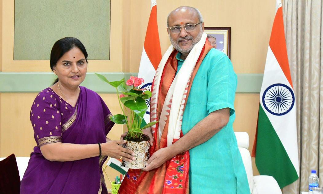 Hyderabad: Chief Secretary A. Santhi Kumari here on Tuesday met Governor C. P. Radhakrishnan at Raj Bhavan here to discuss the forthcoming monsoon Assembly session.