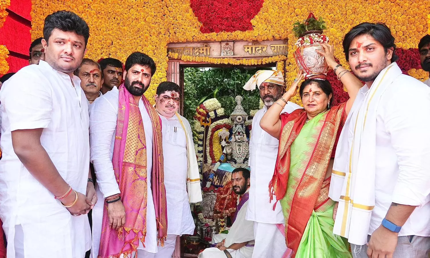 Hyderabad: The Deputy Chief Minister Mallu Bhatti Vikramarka along with his family members visited the Lal Darwaja temple and celebrated the Bonalu festivities.