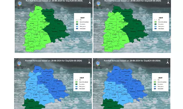 On August 31, heavy to very heavy rain is likely at isolated places in Komaram Bheem, Mancherial, Jagityala, Rajanna Siricilla, Karimnagar, Khammam, Mahabubabad, Warangal, and Hanamkonda. Additionally, heavy rain is likely at isolated places in Nalgonda, Suryapet, Jangaon, Yadadri, Hyderabad, Medchal-Malkajgiri, Medak, and Kamareddy districts.