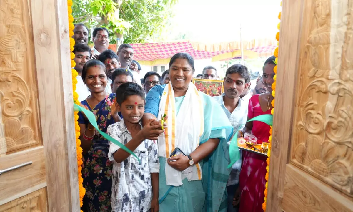 Accompanied by district library chairman B. Ravi Chandder and Market Committee Chairperson Rega Kalyani, the Minister inaugurated the Indiramma House of beneficiary Bayya Pramila in the BC Colony of Venkatapur mandal, Mulugu district, on Thursday.