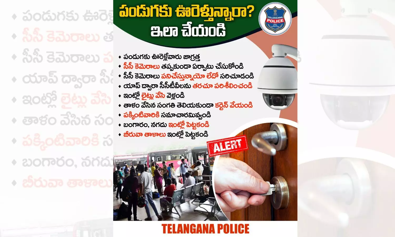 Hyderabad: Telangana police have issued a caution to citizens who are traveling to their native places to celebrate the Sankranti festival with their loved ones. As thieves often target homes when the occupants are away, the police urge people to secure their houses before leaving.