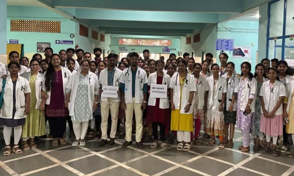 Hyderabad: Junior doctors from private medical colleges across Telangana wore black badges on Saturday in protest the denial of mandatory stipends, despite a clear government order on equal pay with their government college counterparts.