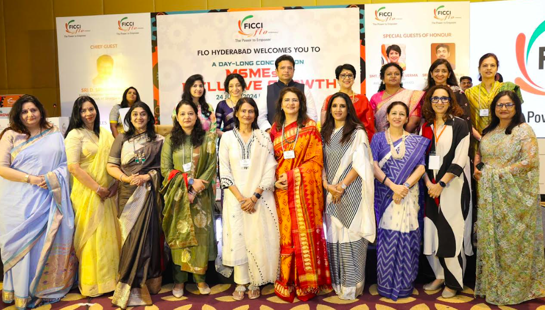 Ni-msme director general Dr Glory Swarupa, FLO Hyderabad chapter chairperson Priya Gazdar, Telangana IT and industries minister D. Sridhar Babu and FLO national president Joyshree Das Verma at the event.