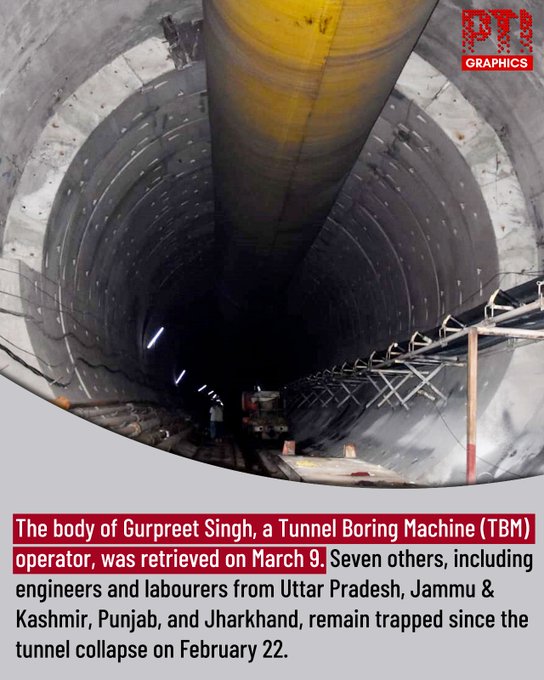 Rescue teams on March 9 retrieved the body of Gurpreet Singh, a Tunnel Boring Machine (TBM) operator who worked for a foreign company involved in the tunnel project.