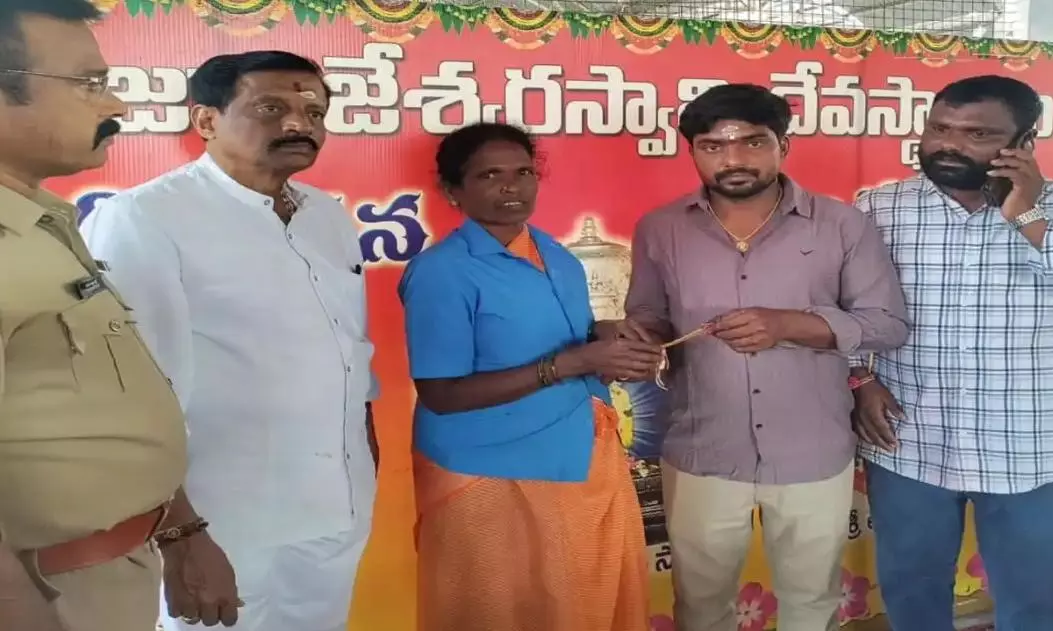 The incident occurred when Resu Satish, a resident of Kundaram village in Warangal district, visited the temple for darshan and accidentally dropped his gold bracelet.