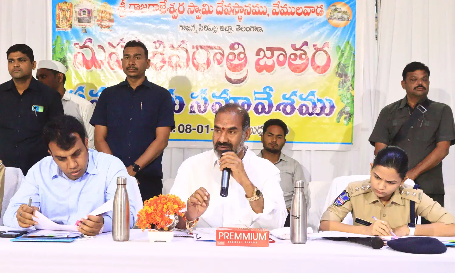 Karimnagar: Government Chief Whip and MLA Aadi Srinivas, along with district collector Sandeep Kumar Jha, directed officials to implement stringent measures to ensure the smooth conduct of the Maha Shivaratri Jatara at the Sri Raja Rajeshwara Swamy temple. The coordination meeting took place at the temple premises on Wednesday.