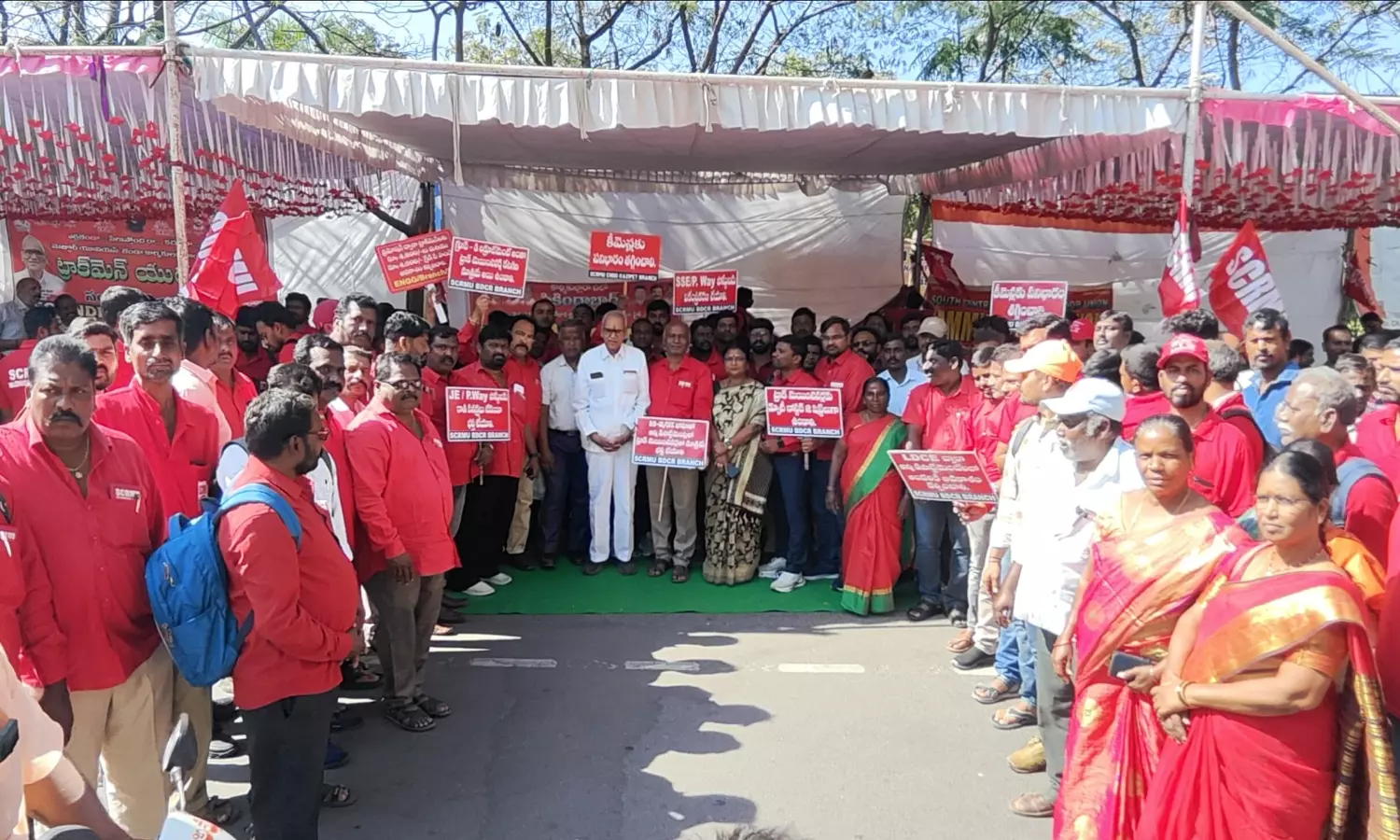 Track maintainers’ stage protests in Telangana, AP against Centre’s anti-labour policies