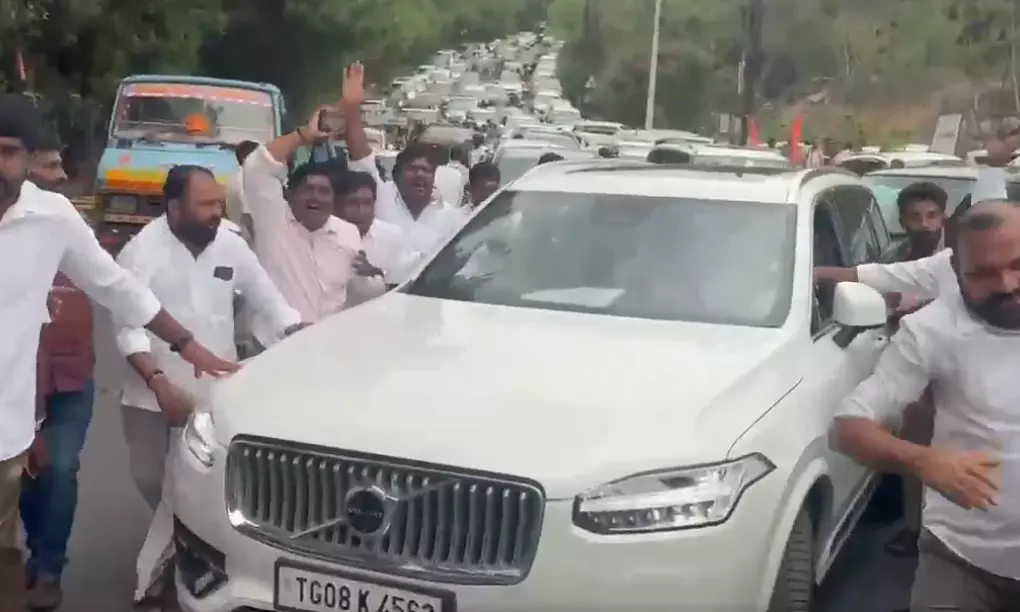 BRS MLA and former minister Harish Rao left the place with a huge convoy, to appear before the PC Ghose Commission probing the lapses in the Kaleshwaram Lift Irrigation project