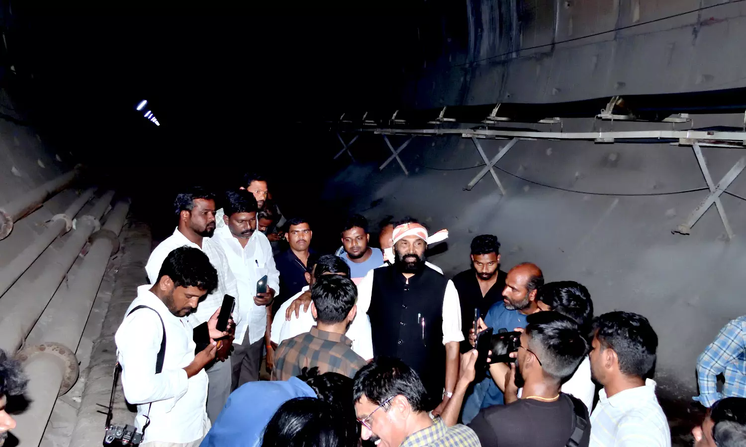HYDERABAD: Irrigation minister N. Uttam Kumar Reddy is set to return to the SLBC tunnel inlet site in Domalapenta of Nagarkurnool district on Tuesday morning. The minister was there on Saturday and Sunday, overseeing the putting together of the rescue effort to save the eight workers trapped in the tunnel, a section of which collapsed on Saturday morning.