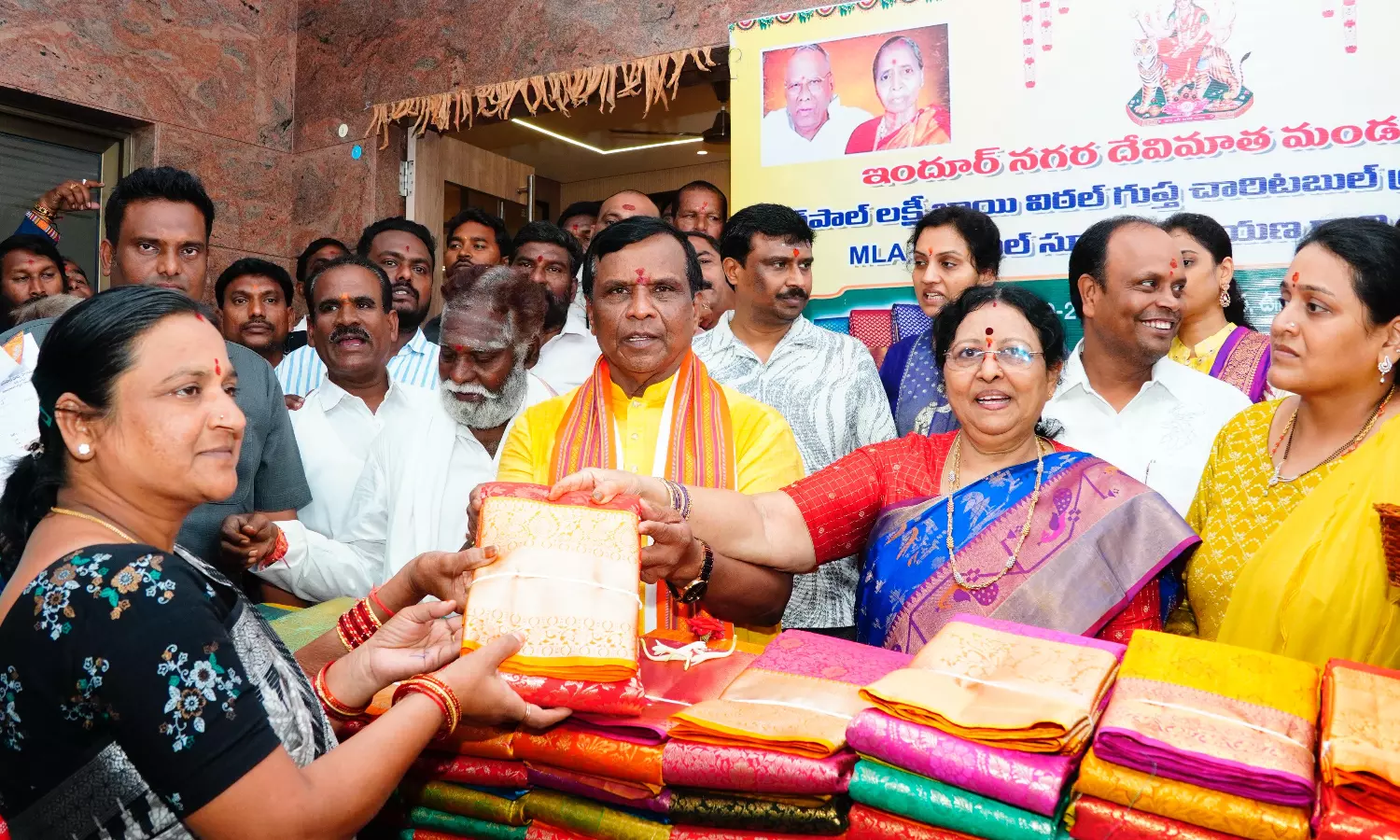 Urban MLA Distributes Silk Saris To Devi Mata Pandals